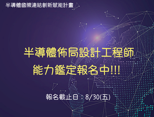 為提升半導體設計人才專業與實作能力,半導體國際連結創新賦能計畫委託國立陽明交通大學 將於9/28(六)辦理「半導體佈局設計工程師能力鑑定」。 更多詳細資訊請見IC佈局設計能力鑑定網頁公告:...