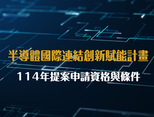 產發署「半導體國際連結創新賦能計畫」以提升半導體專業技術職能與強化實務能力為主要目標,114年針對半導體或新興應用晶片技術推動實作及研討,申請單位資格與條件如下: 一、申請單位之資格條件: ...