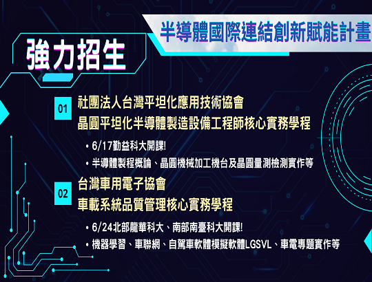 為強化半導體智慧電子產業潛力人才實作能力,經濟部產發署智慧電子學院核心實務學程已開放報名,透過業師技術指導及實務設備演練,有效提升即戰力!鼓勵應屆畢業生、欲轉職者、待業者踴躍報名參與。 ...